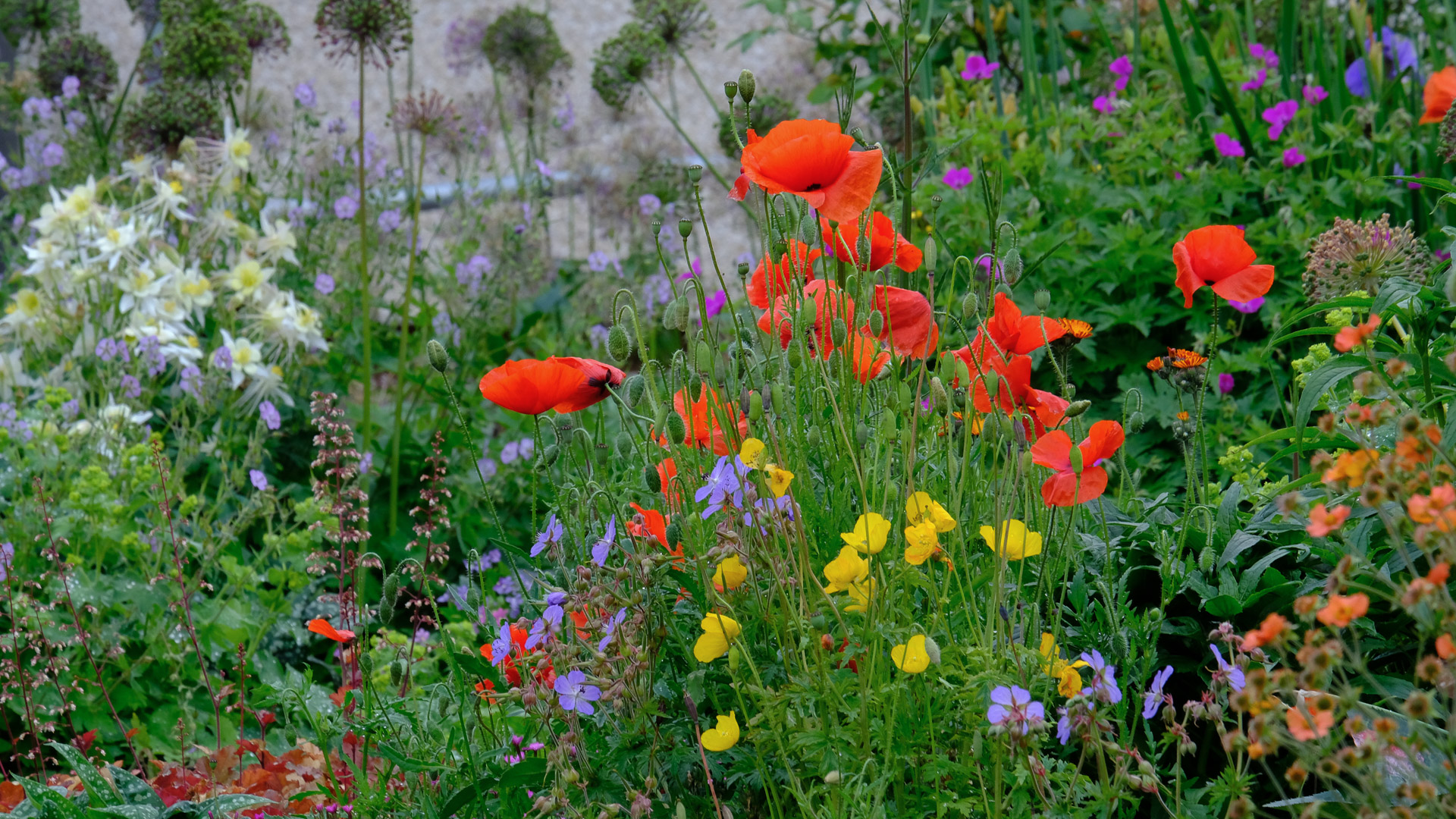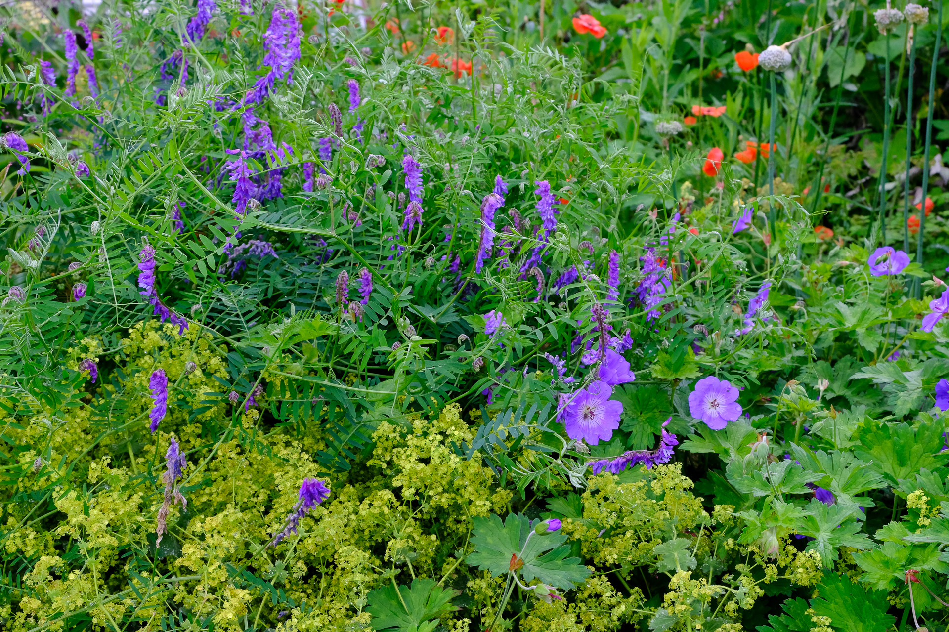 Alchemilla molis, Vicia sativa and Geranium ‘Rozanne’